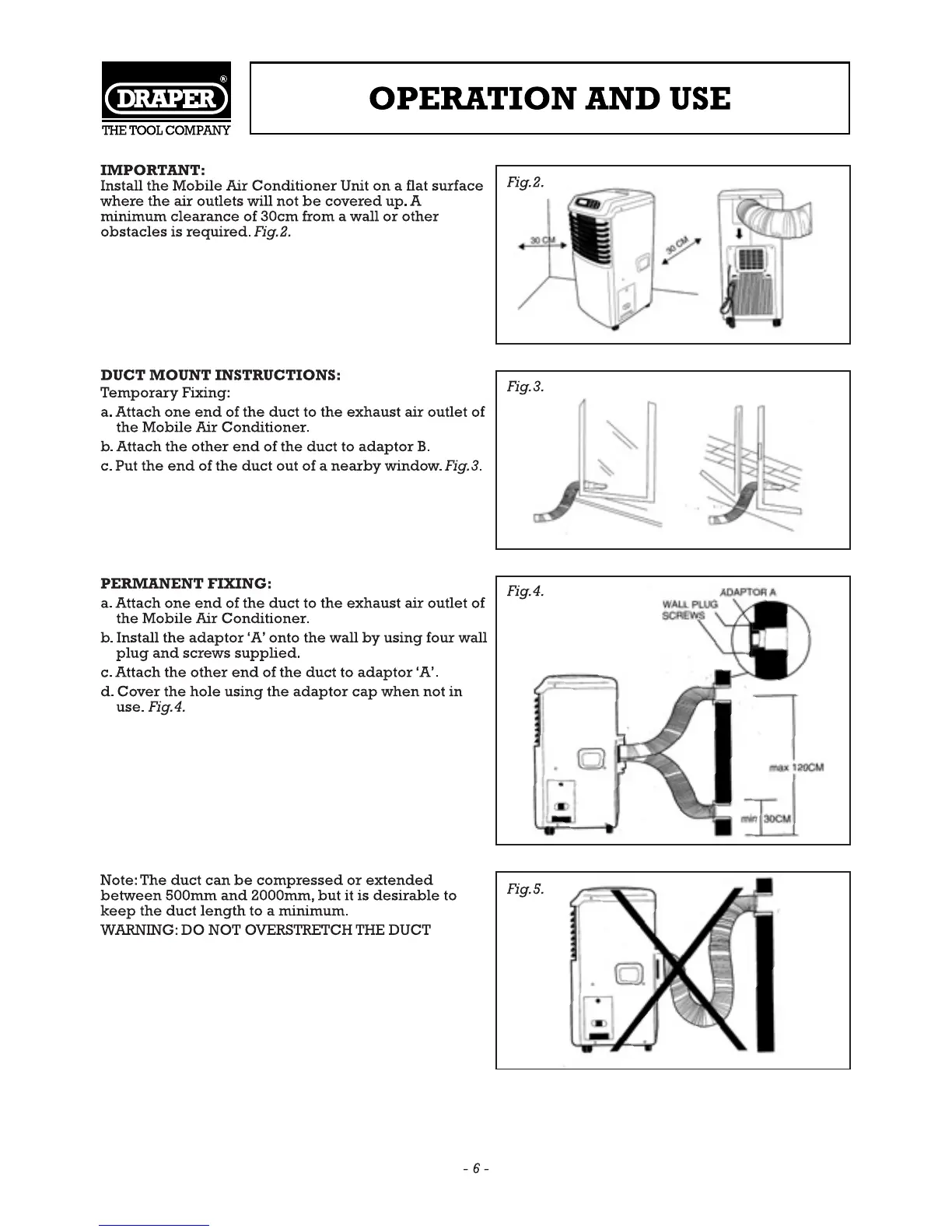 Draper AC9000 - Operation and Use; Duct Mount Instructions; Permanent Fixing