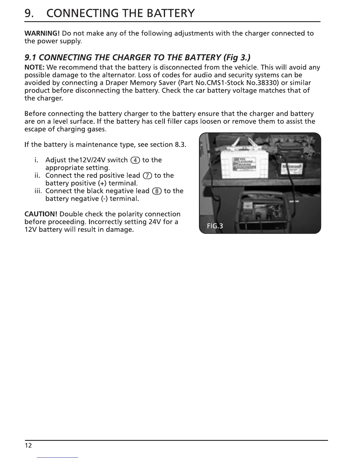 Draper BCSD300T - Connecting the Charger to the Battery