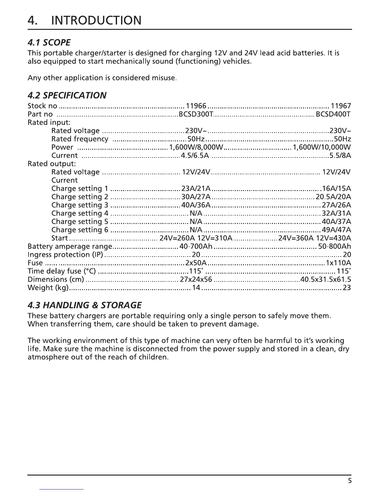 Draper BCSD300T - Scope; Specification; Handling and Storage