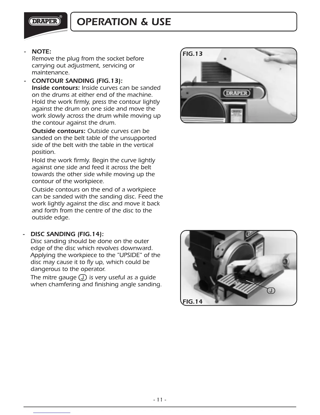 Draper BDS368 - Sander Operation and Use Techniques; Contour Sanding Methods; Disc Sanding Safety and Technique