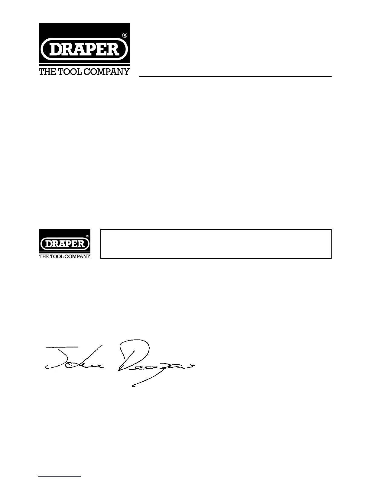 Draper Tools Ltd. Hursley Road, Chandler’s Ford, Eastleigh, Hampshire.