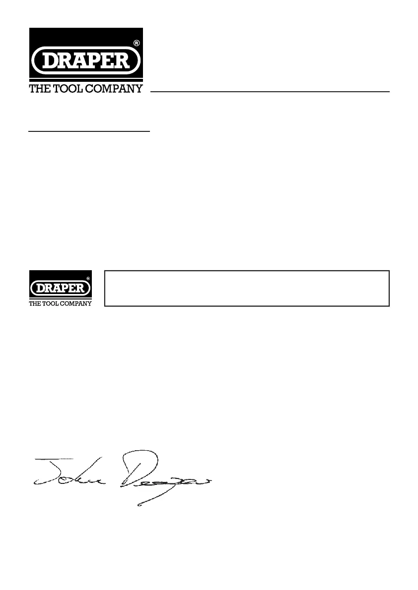 Draper Tools Ltd. Hursley Road, Chandler’s Ford, Eastleigh, Hampshire.