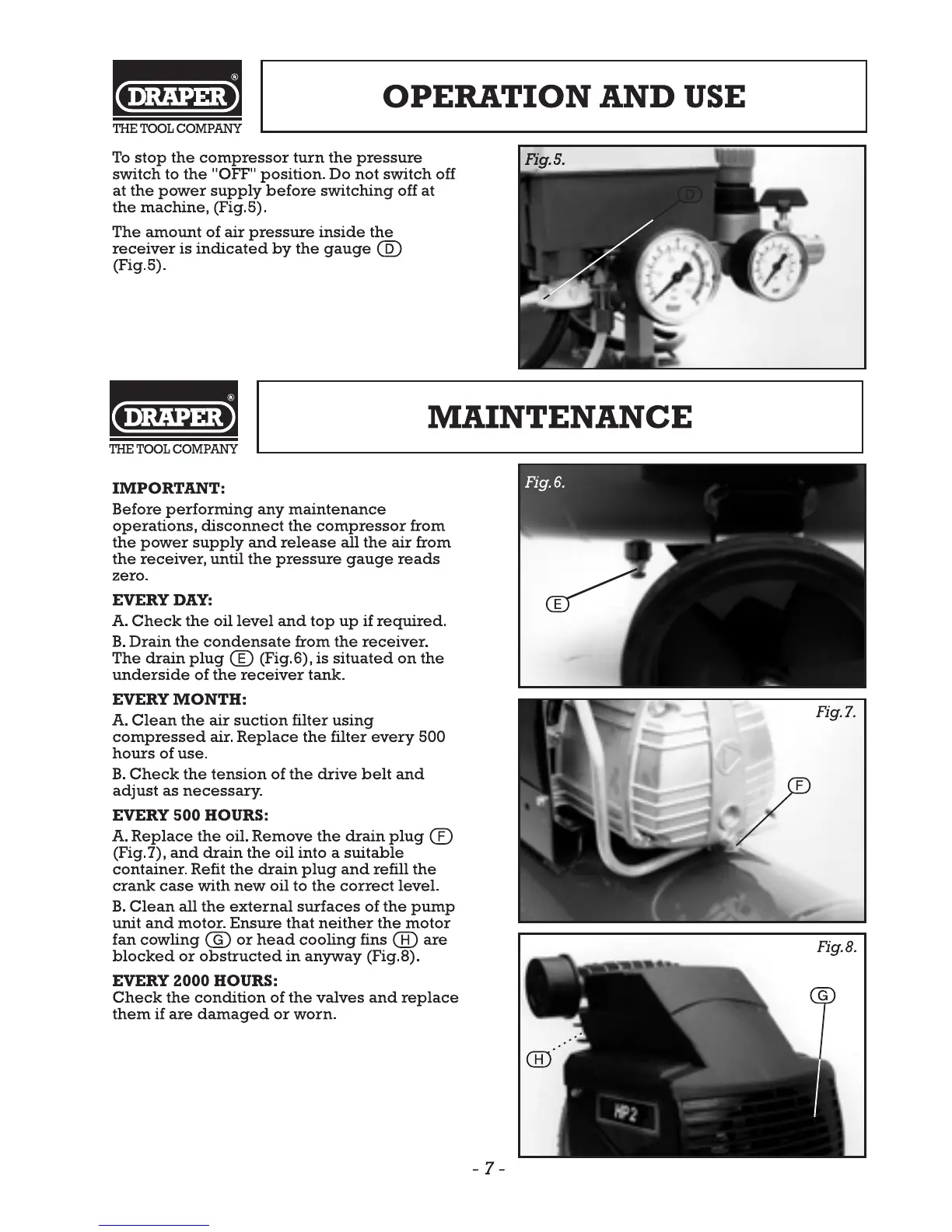 Draper DA25/230 - Maintenance; Daily Checks; Monthly Checks; 500 Hour Service