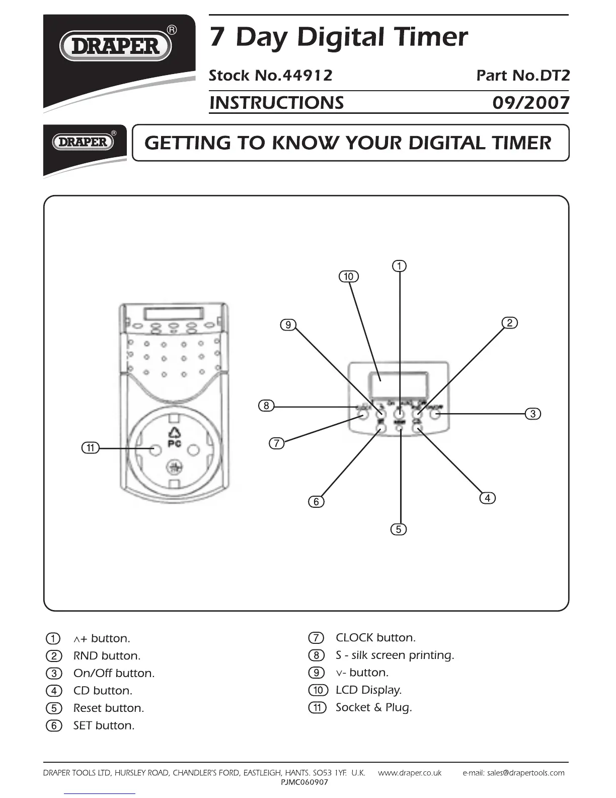 Draper DT2 - Understanding Your Digital Timer; Digital Timer Component Identification