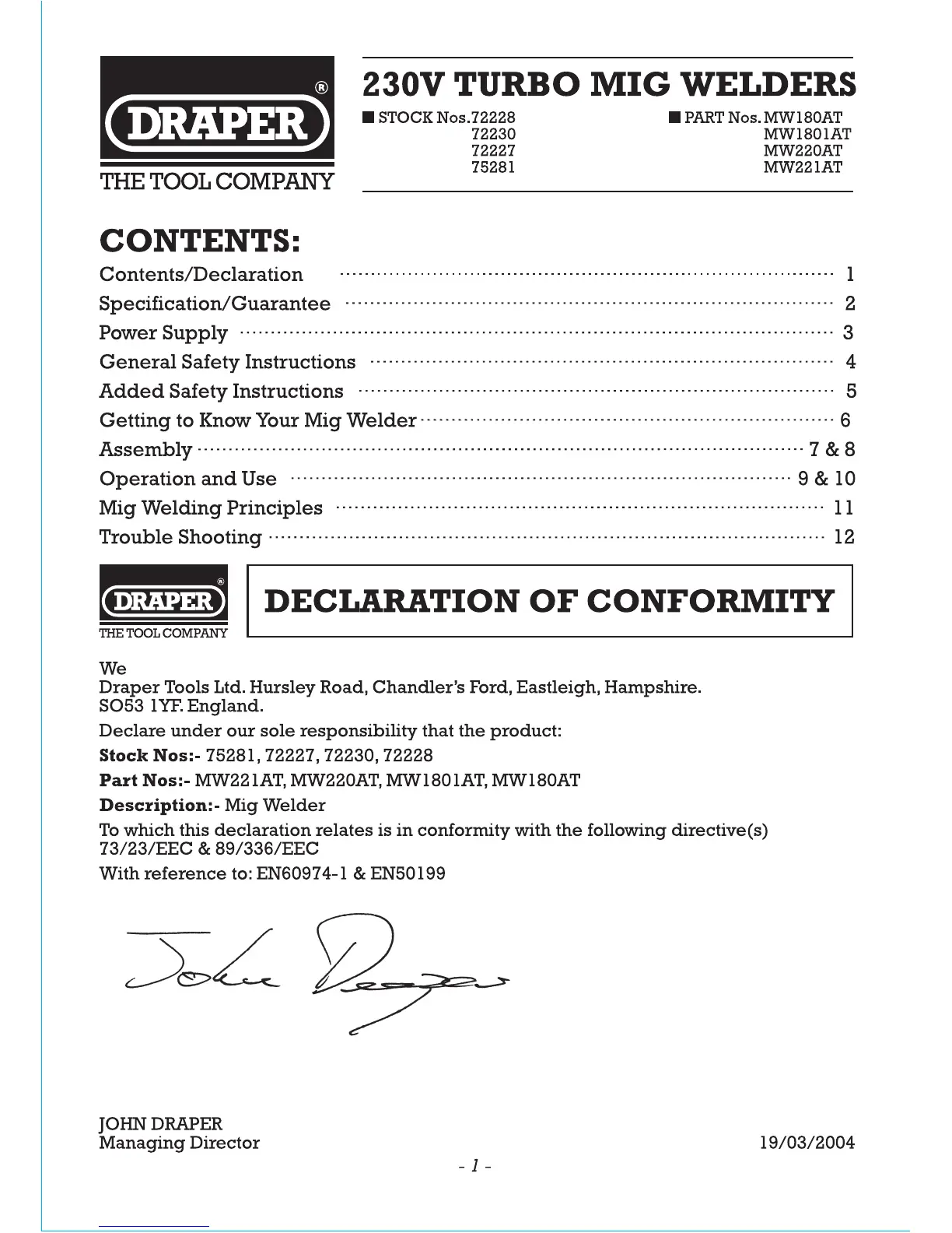 Draper MW180AT - Page 2