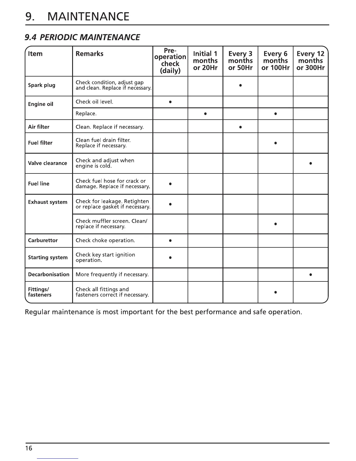 Draper PG251F - Periodic Maintenance Schedule