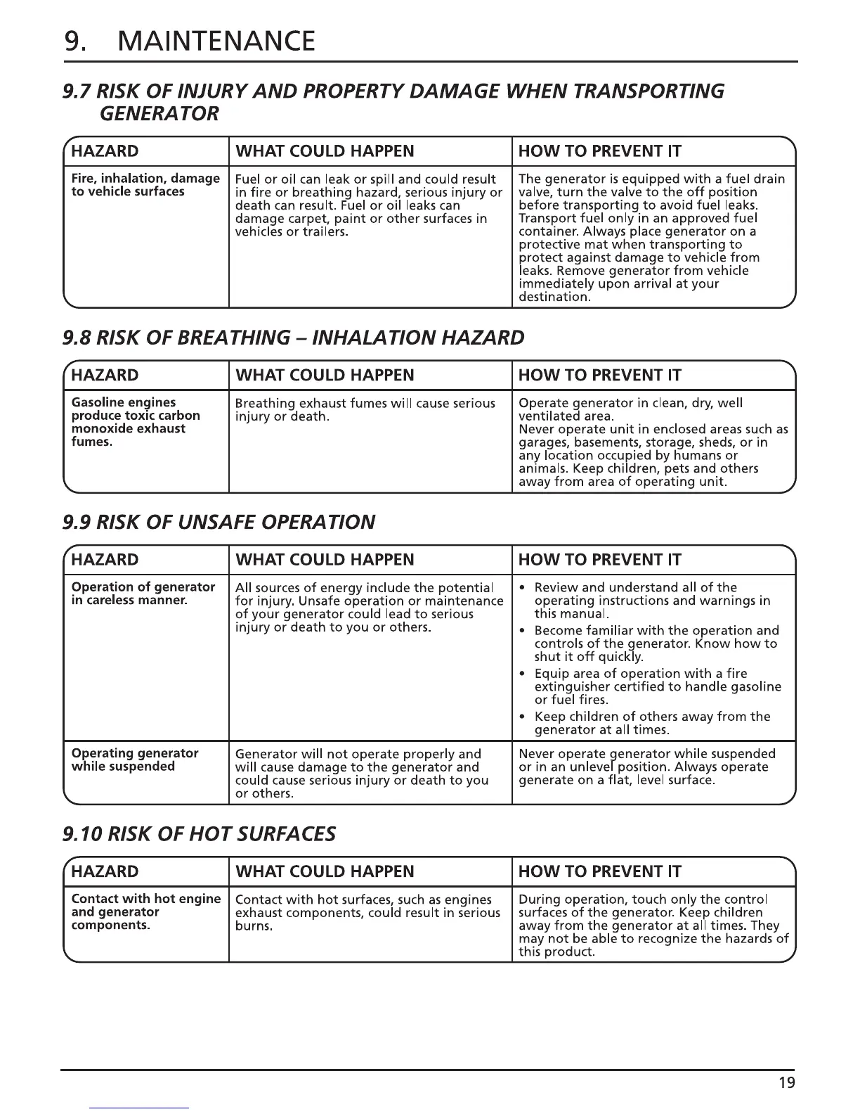 Draper PG251F - Risk of Injury and Property Damage; Inhalation Hazard; Unsafe Operation; Hot Surfaces