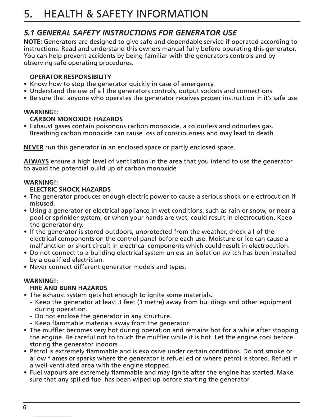 Draper PG251F - HEALTH & SAFETY INFORMATION; General Safety Instructions