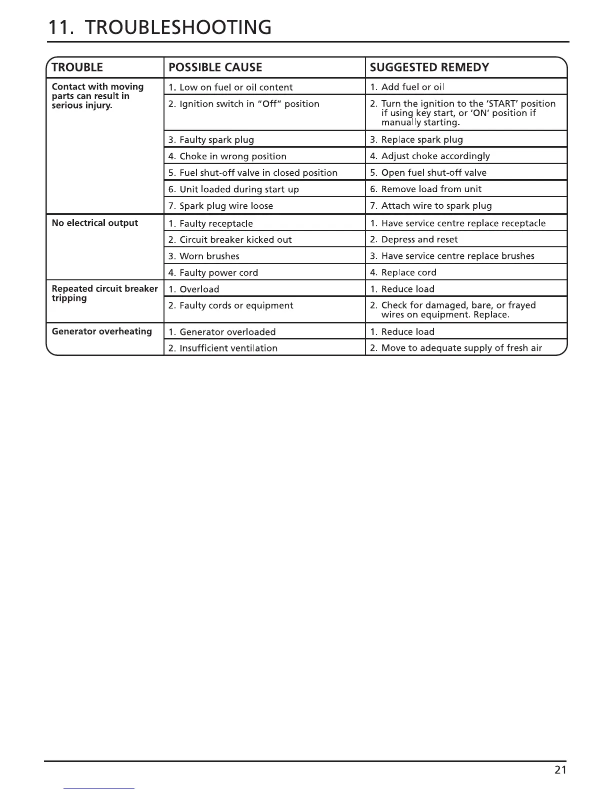Draper PG27W - TROUBLESHOOTING; COMMON PROBLEMS AND SOLUTIONS