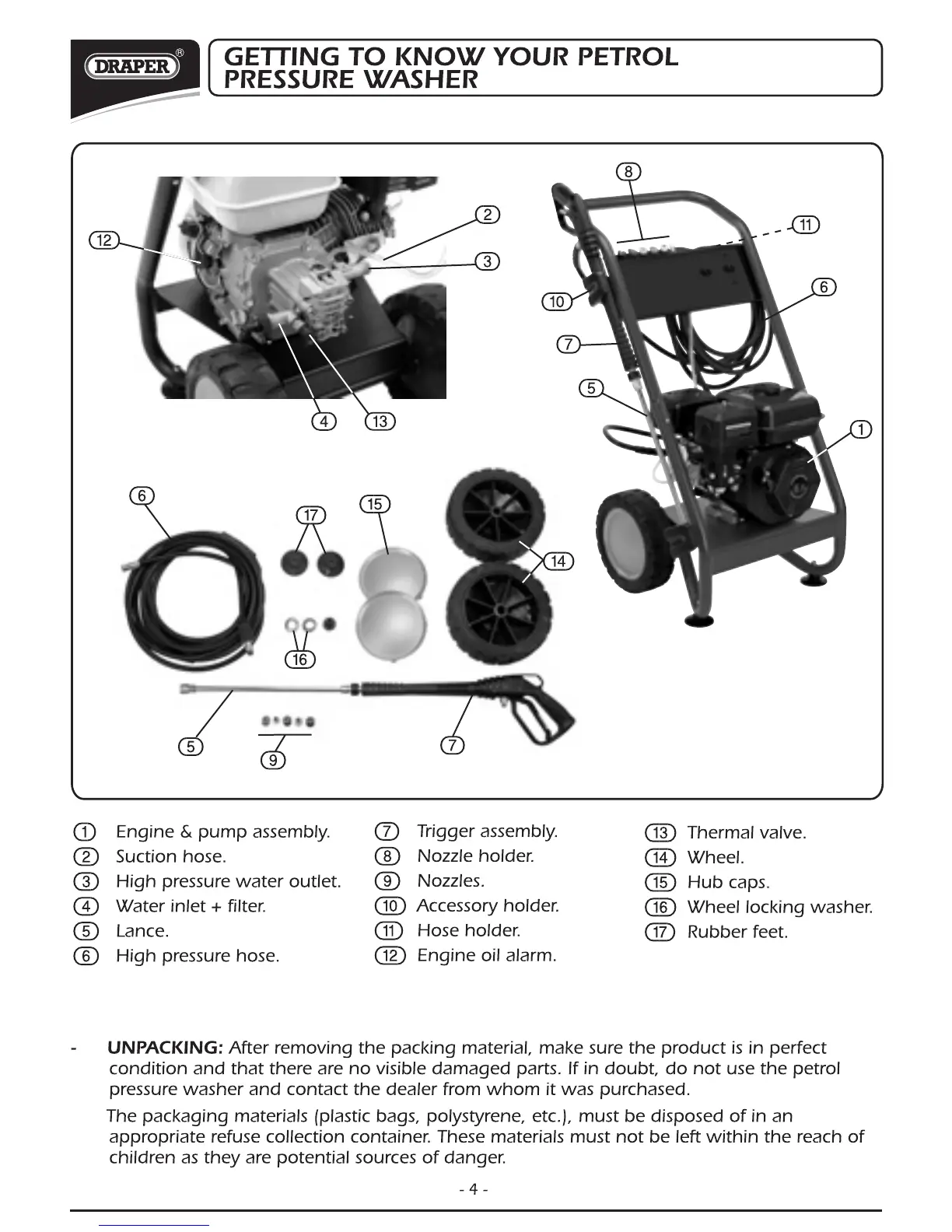 Draper PPW540 - Getting to Know Your Petrol Pressure Washer