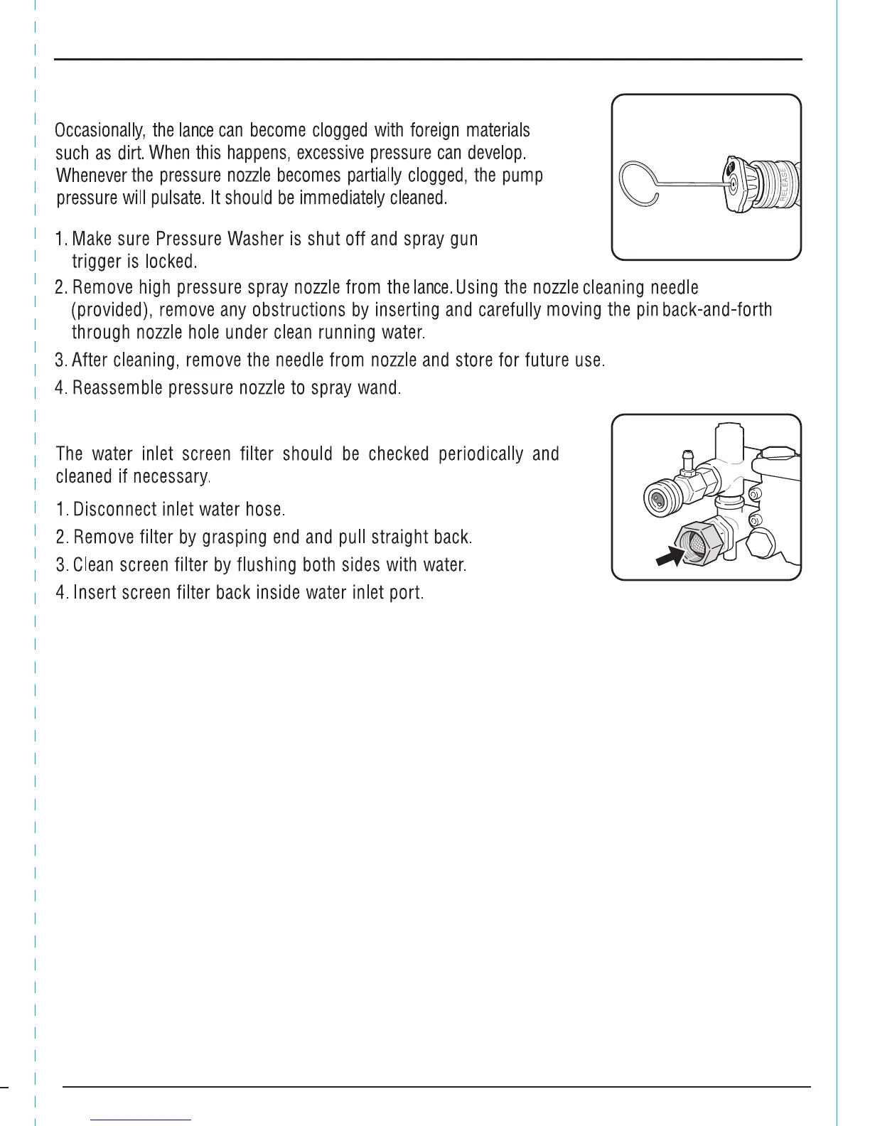 Draper PPW650 - 11.2 NOZZLE CLEANING; 11.3 WATER INLET FILTER CLEANING