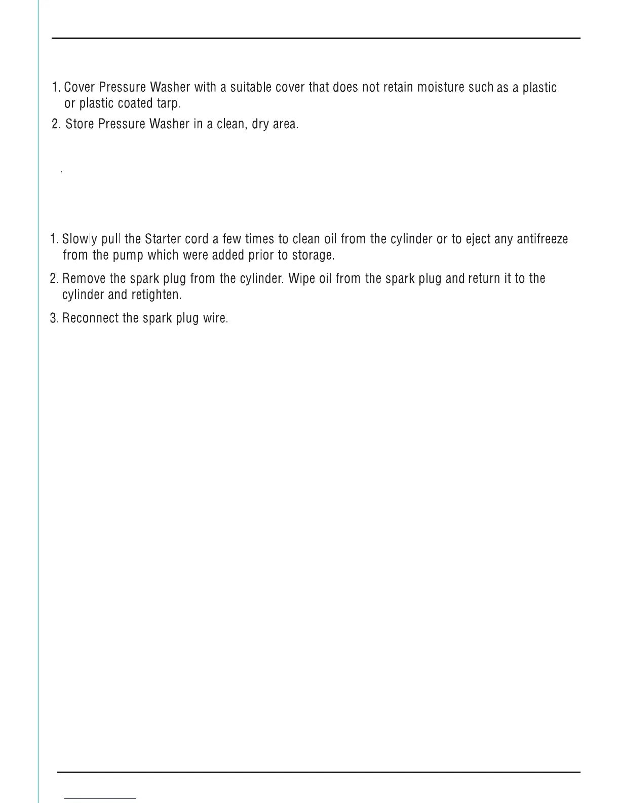 Draper PPW650 - 11.7 PRESSURE WASHER STORAGE COVER; 11.8 PREPARING FOR USE AFTER STORAGE