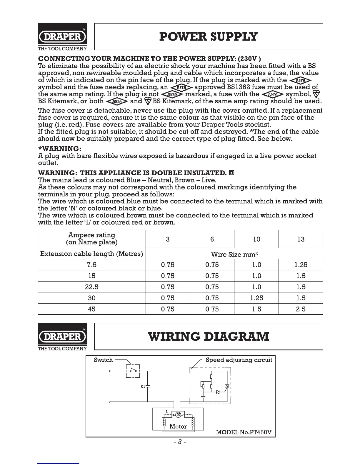 Draper PT450V - Power Supply and Wiring; Wiring Diagram