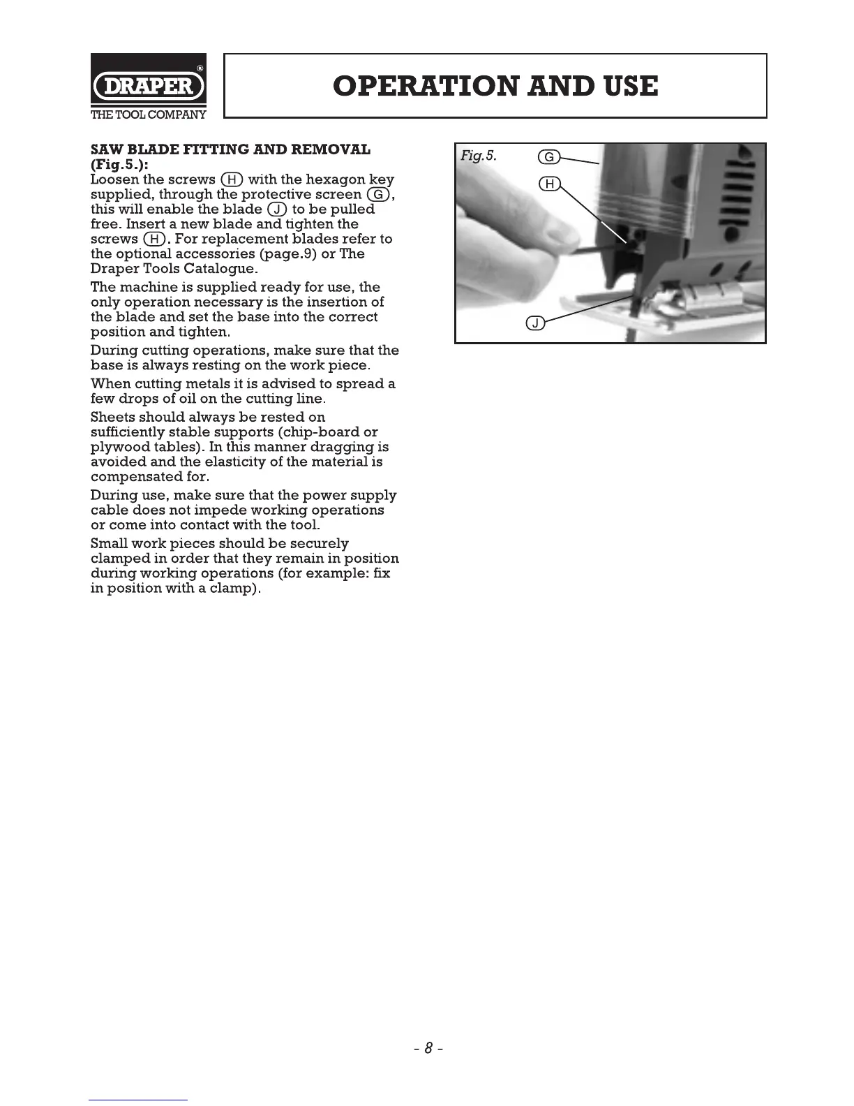 Draper PT450V - Blade Fitting and Workpiece Handling