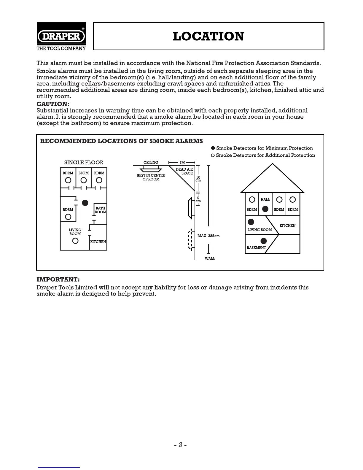 Draper SA2 - Smoke Alarm Installation Location; Recommended Smoke Alarm Placement