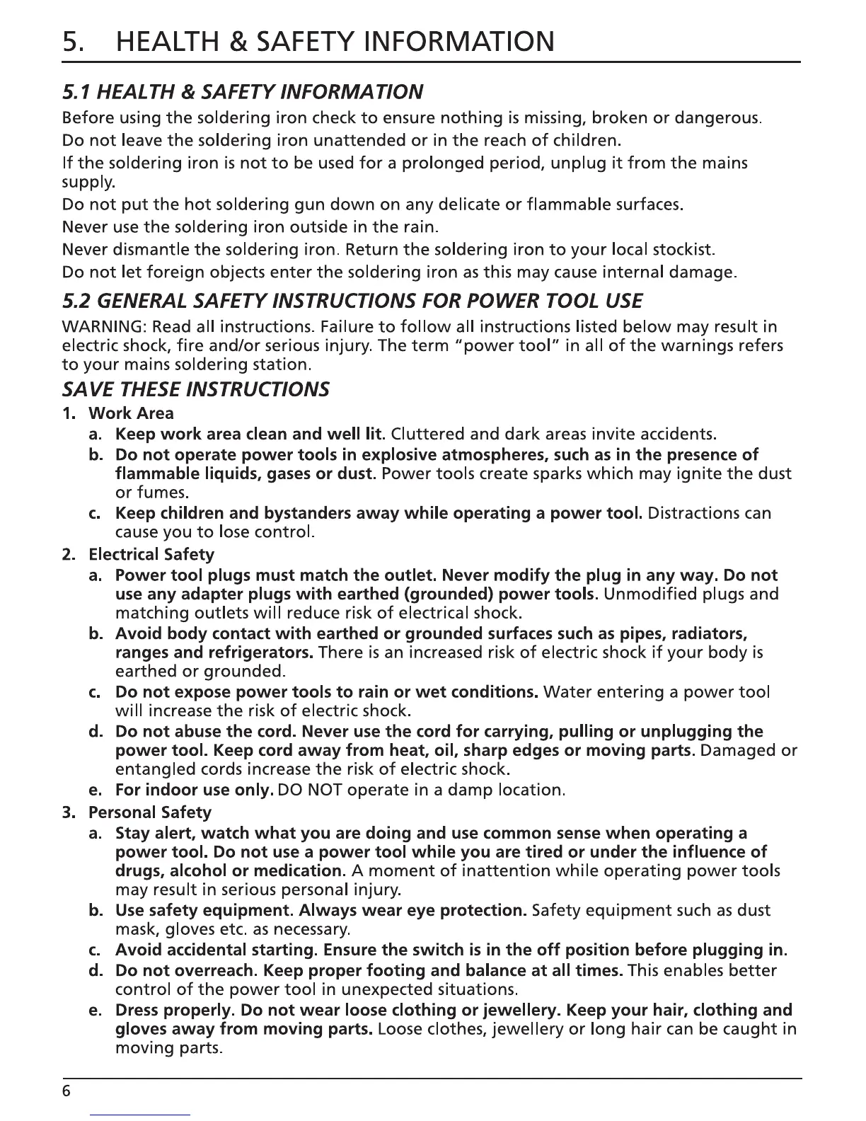Draper SI480 - Health and Safety Information; General Safety Precautions; Power Tool Safety Instructions