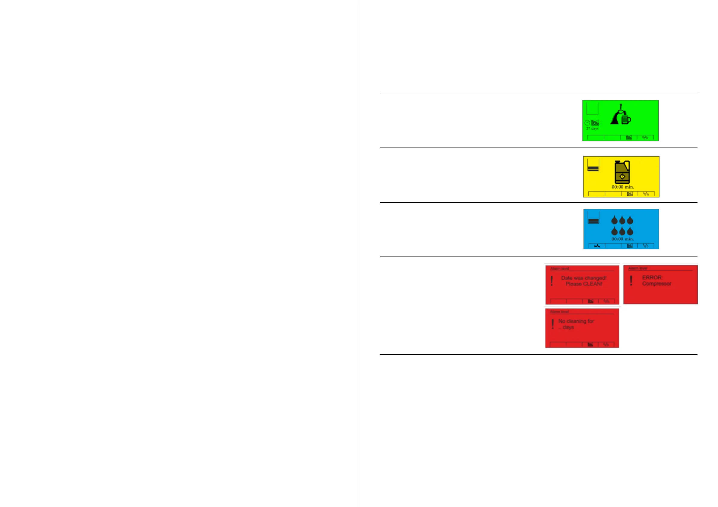 • Check cleaning flow through taps in bar (colour).