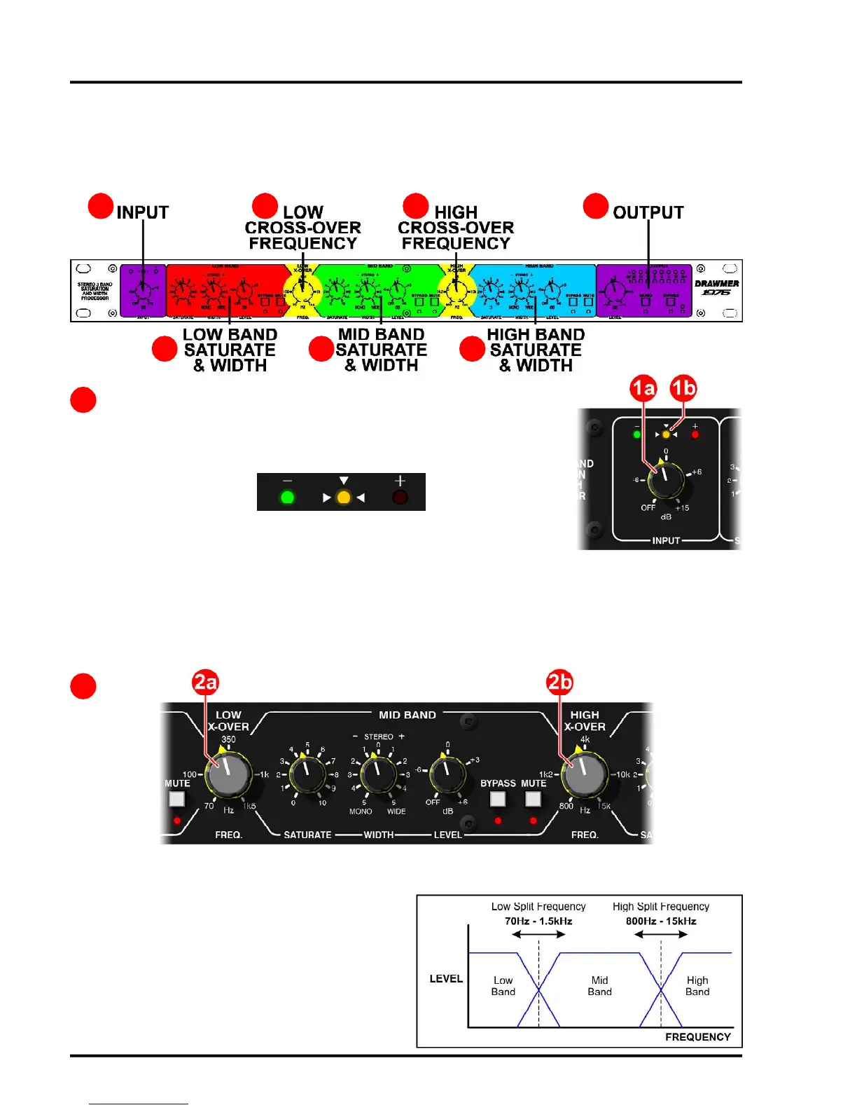 to the left of the unit, after this the stereo signal is split into identical low, mid and high bands of saturation and width,