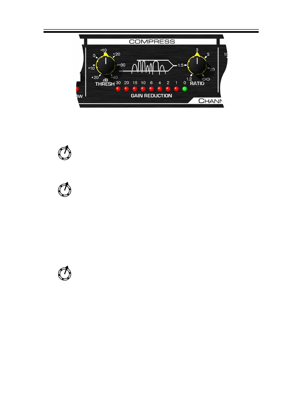 Threshold: This control determines the input level above which gain reduction