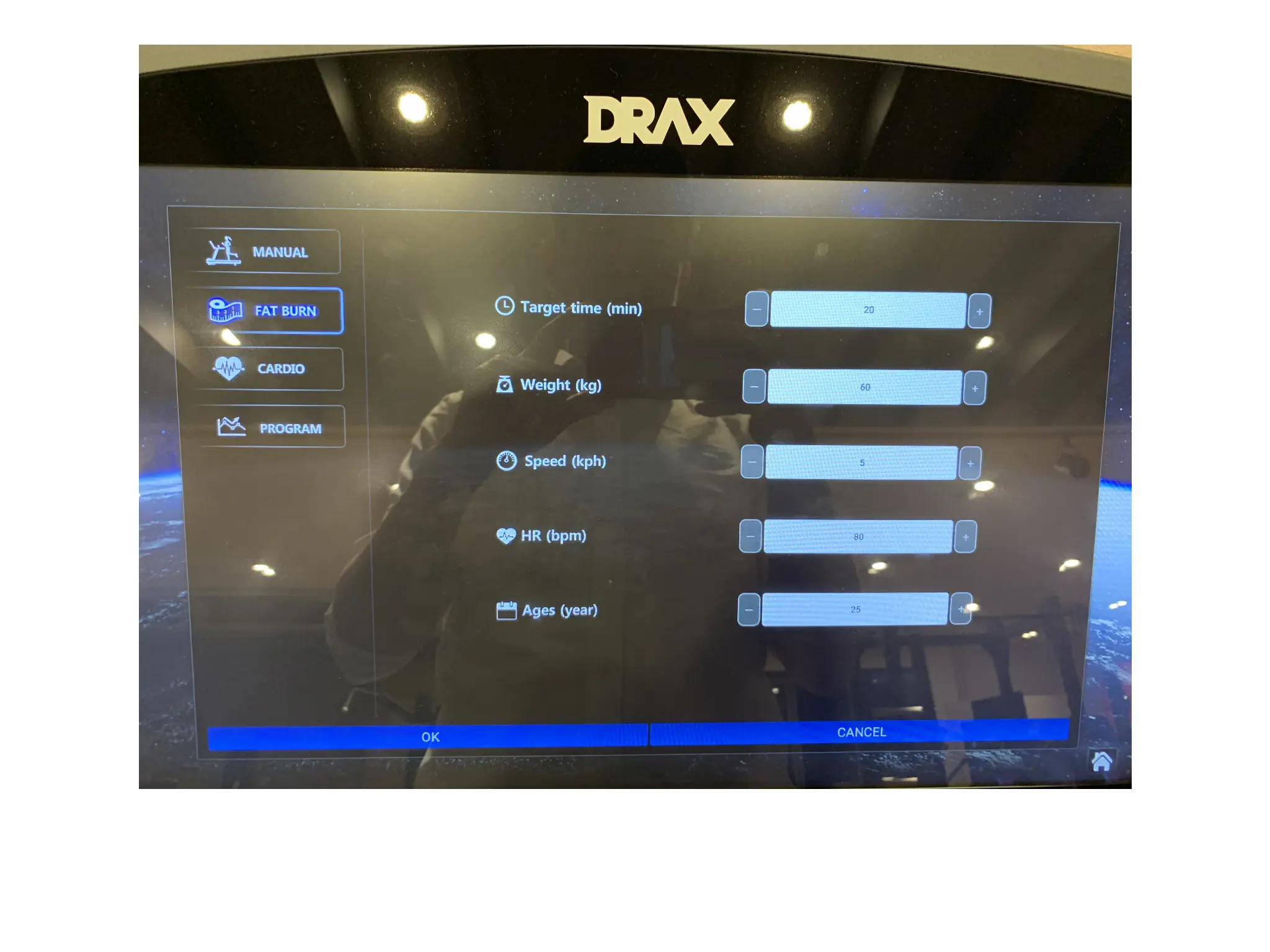 (1) FAT BURN : Designed to keep user’s heart rate at 65% of maximum