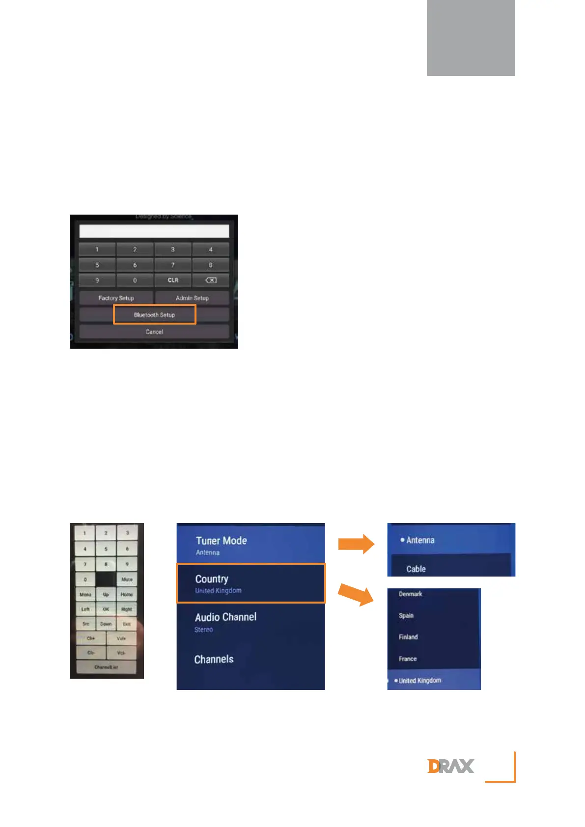 2. Press ‘Admin Setup’ followed by ‘TV Setup’.