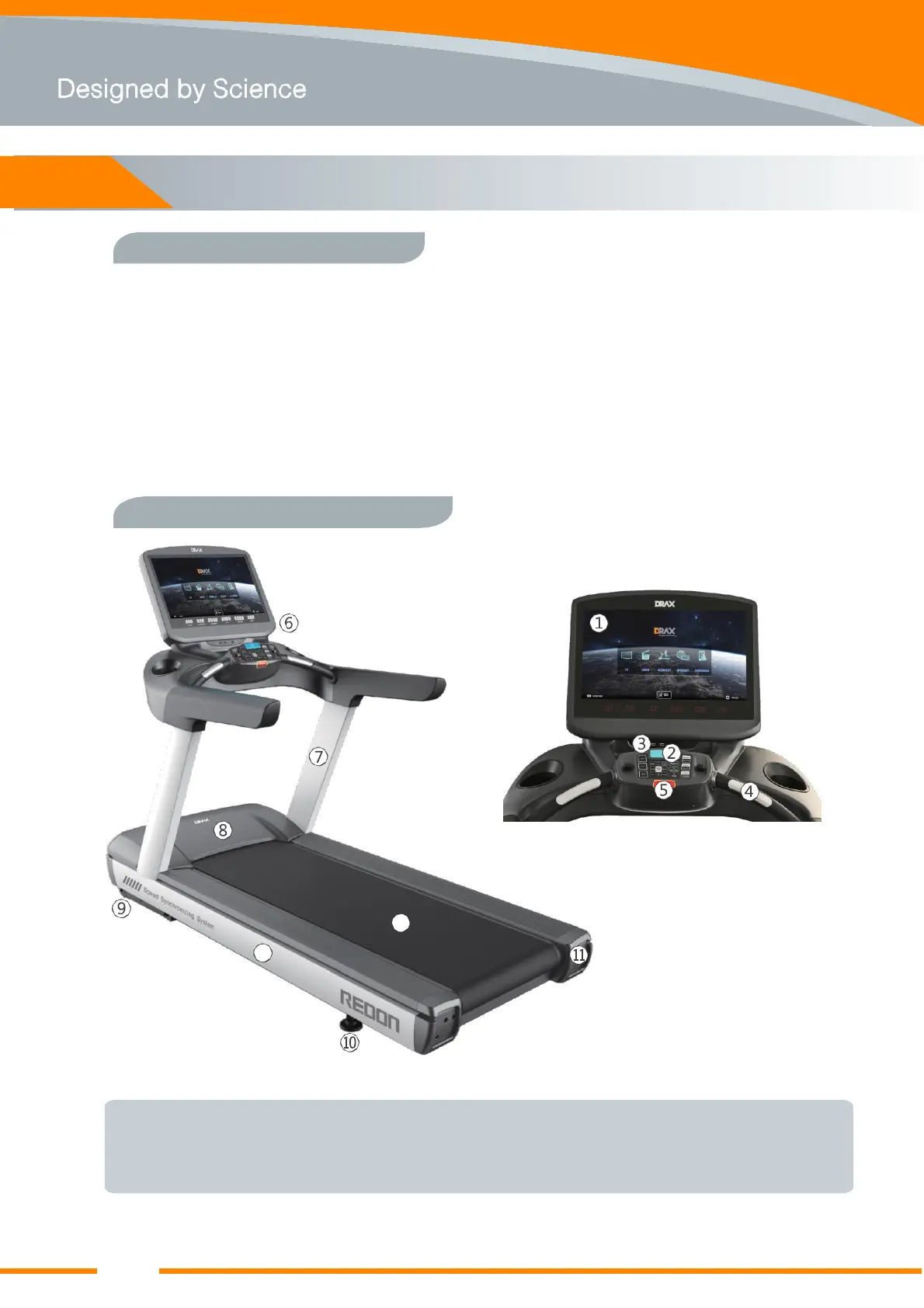 ① Display ② Operation-Panel ③ USB & Earphone ④ Touch Type Heartrate Sensor