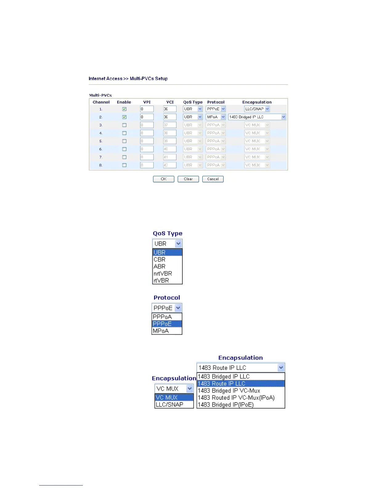 go to Internet Access and select Multi-PVC Setup page.