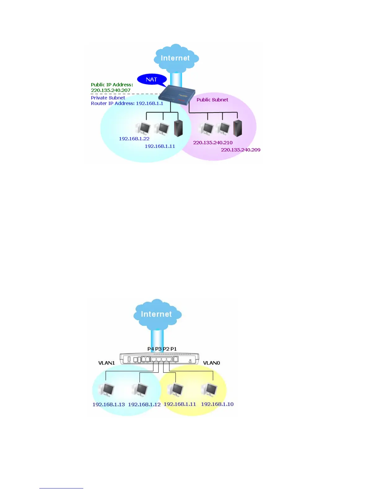 You can group local hosts by physical ports and create up to 4 virtual LANs. To manage the