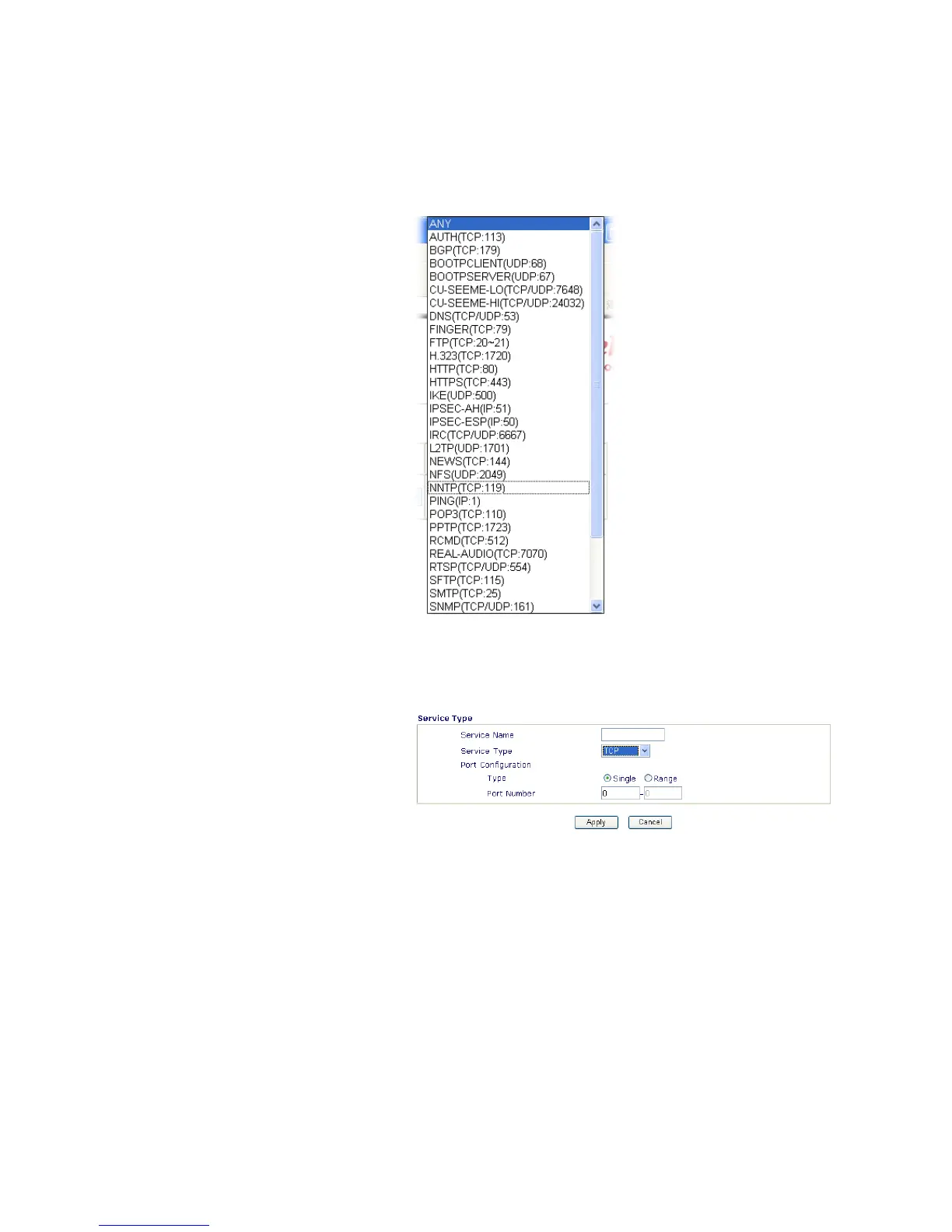 Service Type – Choose the type (TCP, UDP or TCP/UDP) for