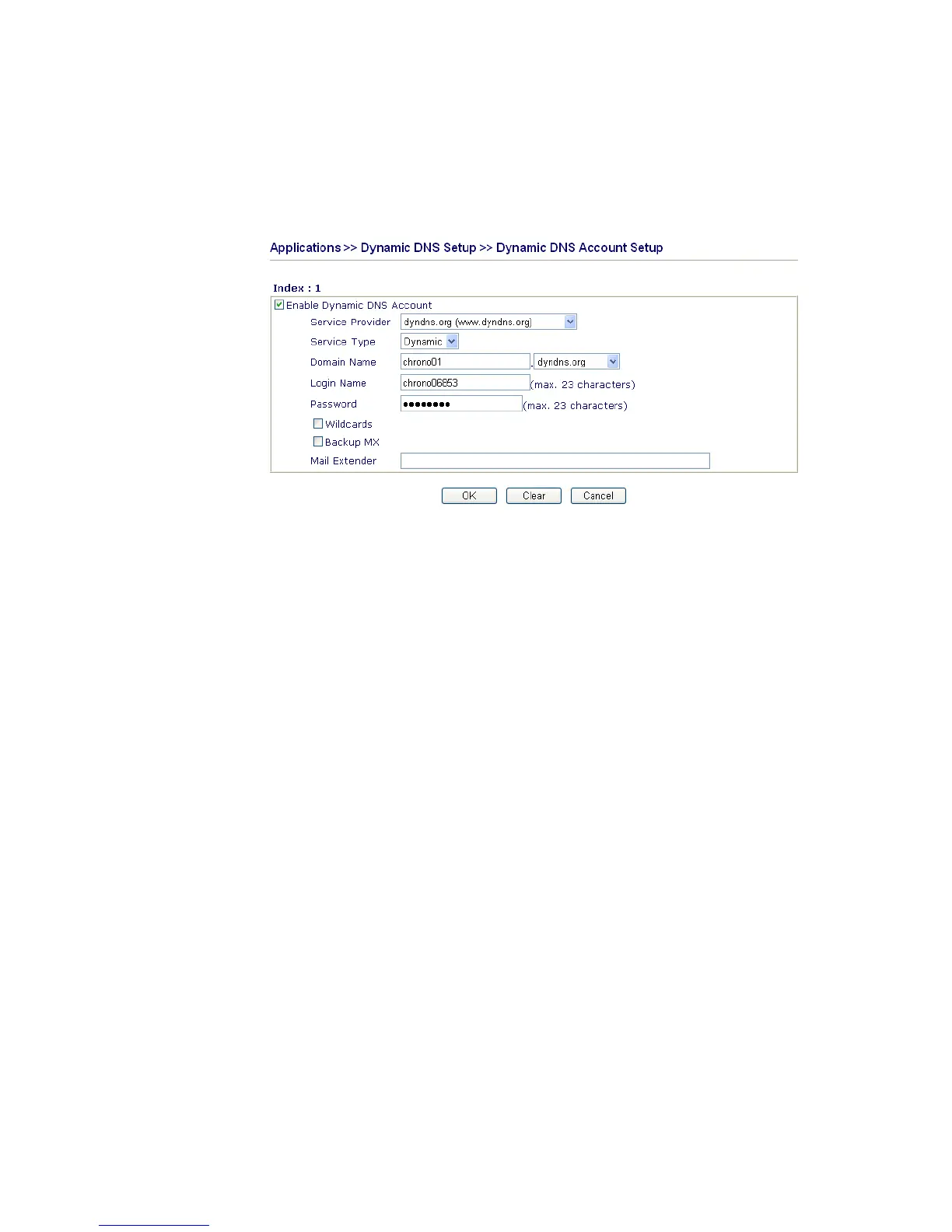 3. Select Index number 1 to add an account for the router. Check Enable Dynamic DNS