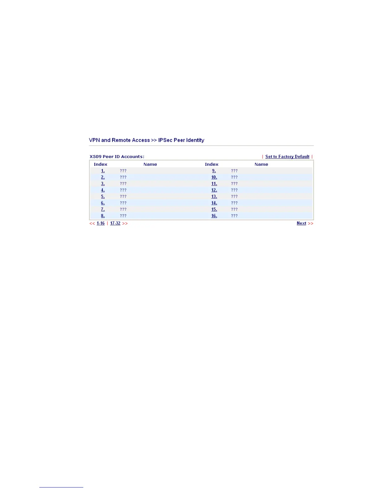 As shown below, the router provides 32 entries of digital certificates for peer dial-in users.