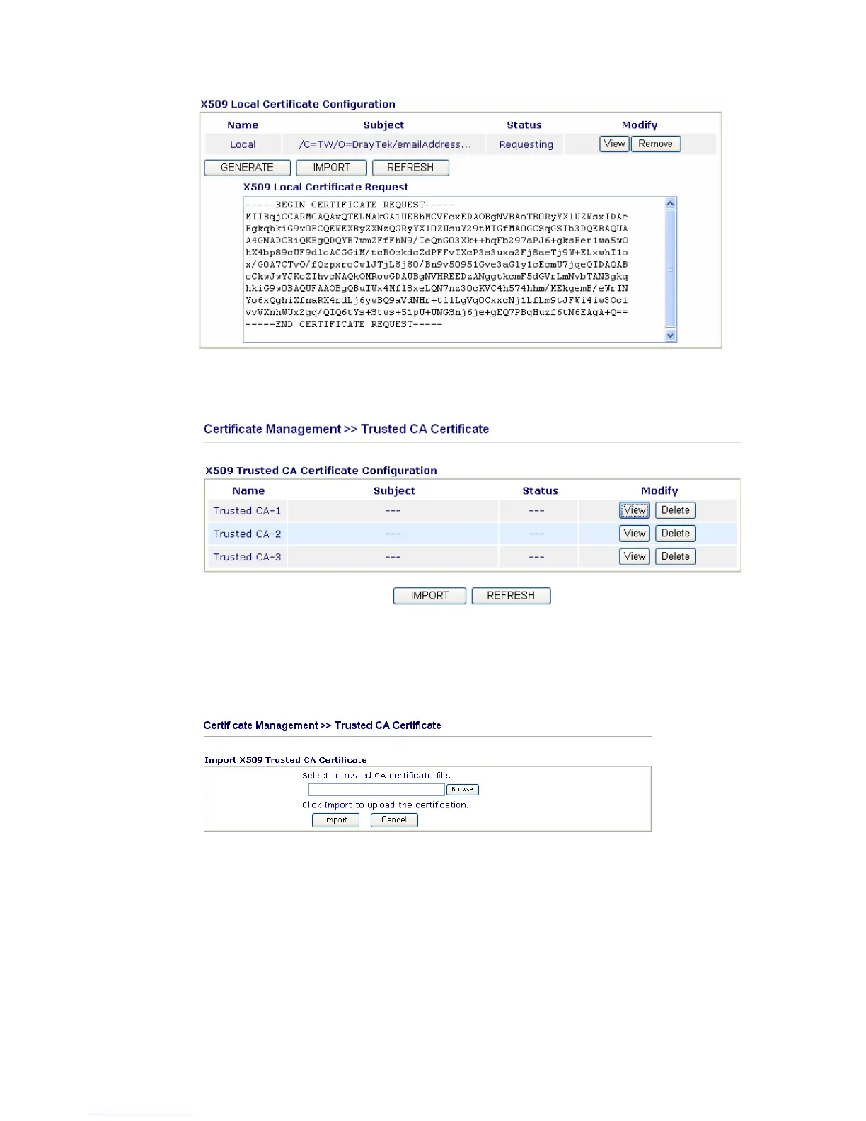 To import a pre-saved trusted CA certificate, please click IMPORT to open the following