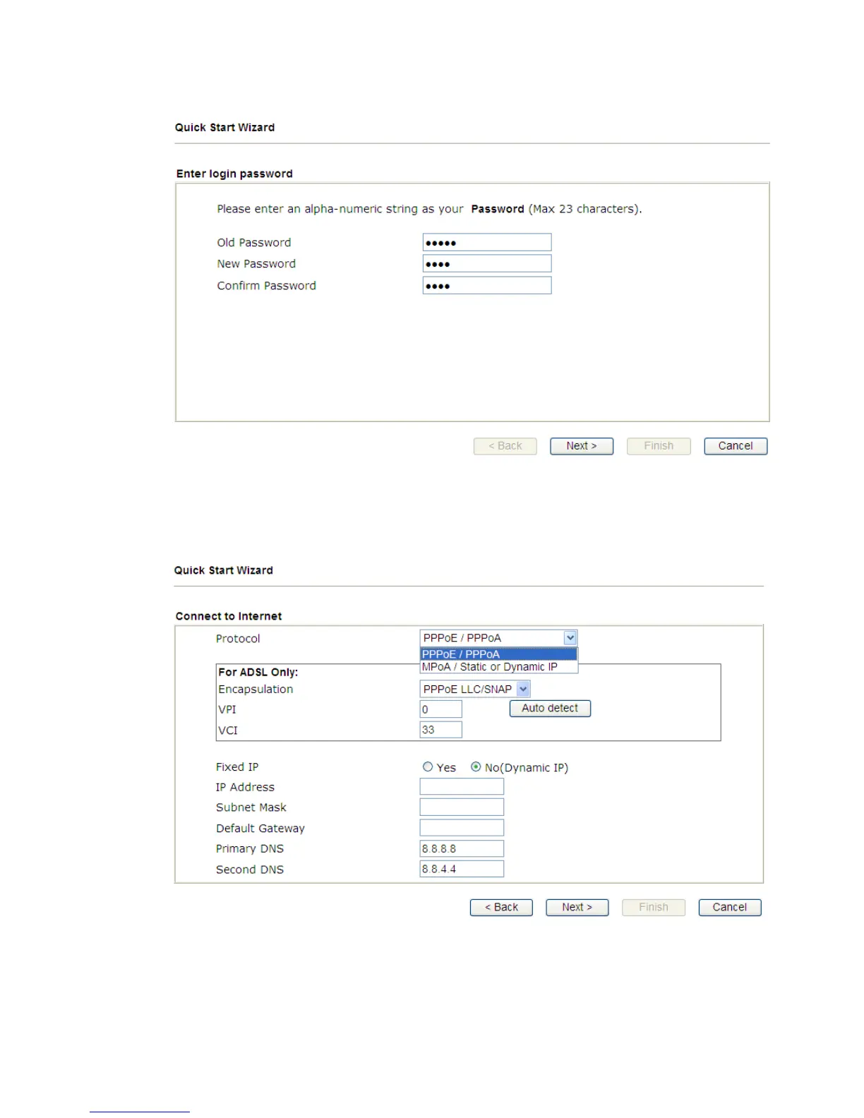 Note: Encapsulation for PPPoE/PPoA contains PPPoE and PPoA;