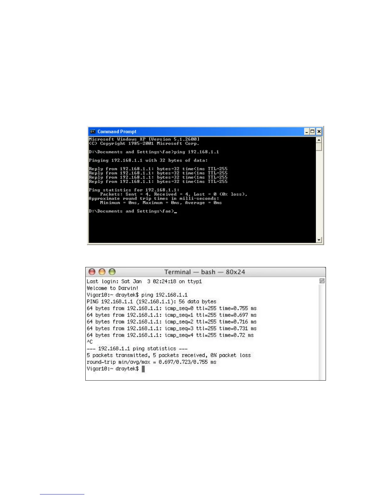 3. Type ping 192.168.1.1 and press [Enter]