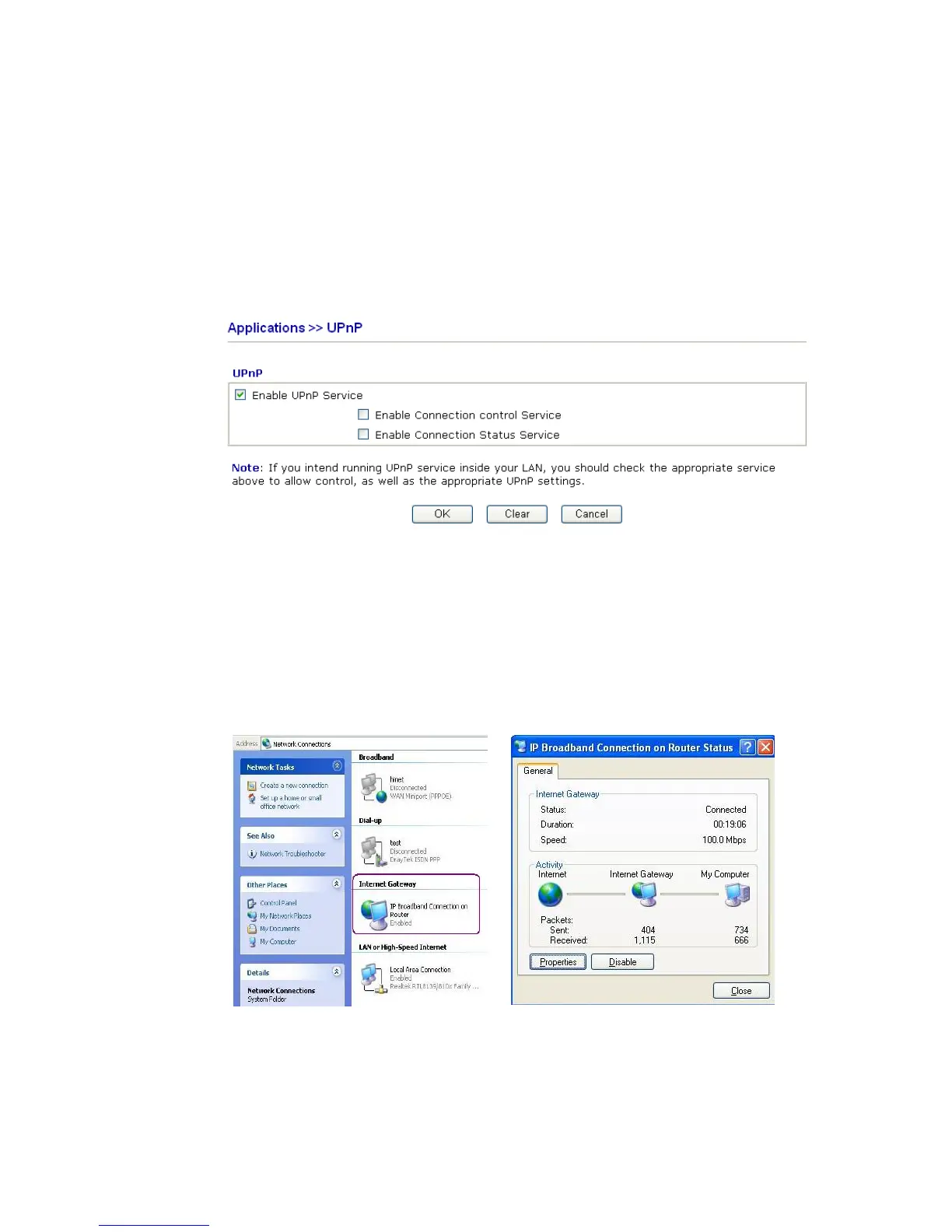 After setting Enable UPNP Service setting, an icon of IP Broadband Connection on
