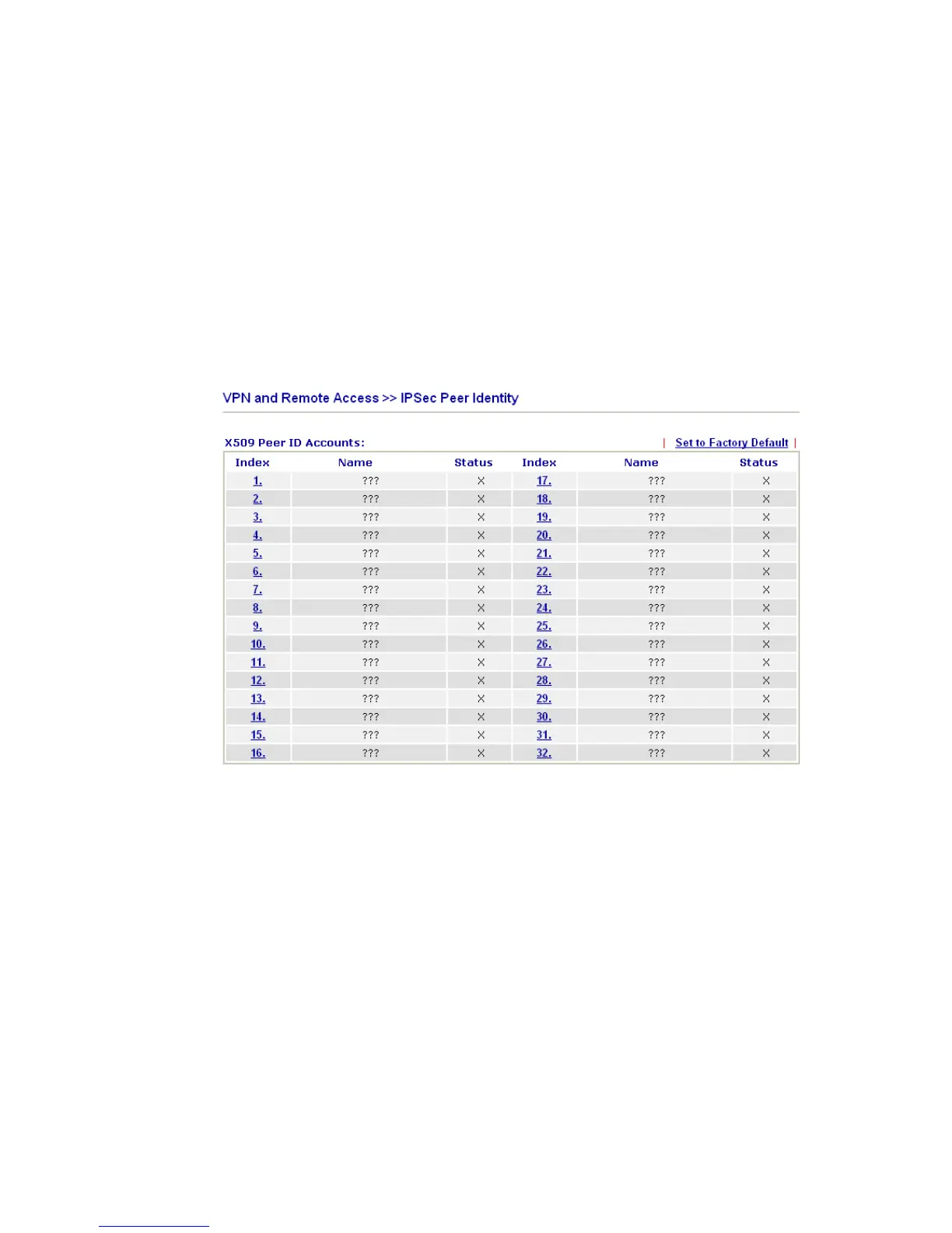 As shown below, the router provides 32 entries of digital certificates for peer dial-in users.