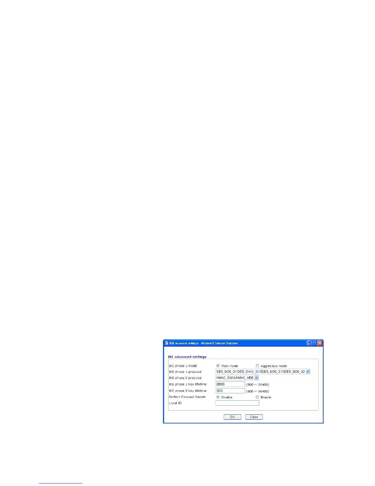 Advanced Specify mode, proposal and key life of each IKE phase,
