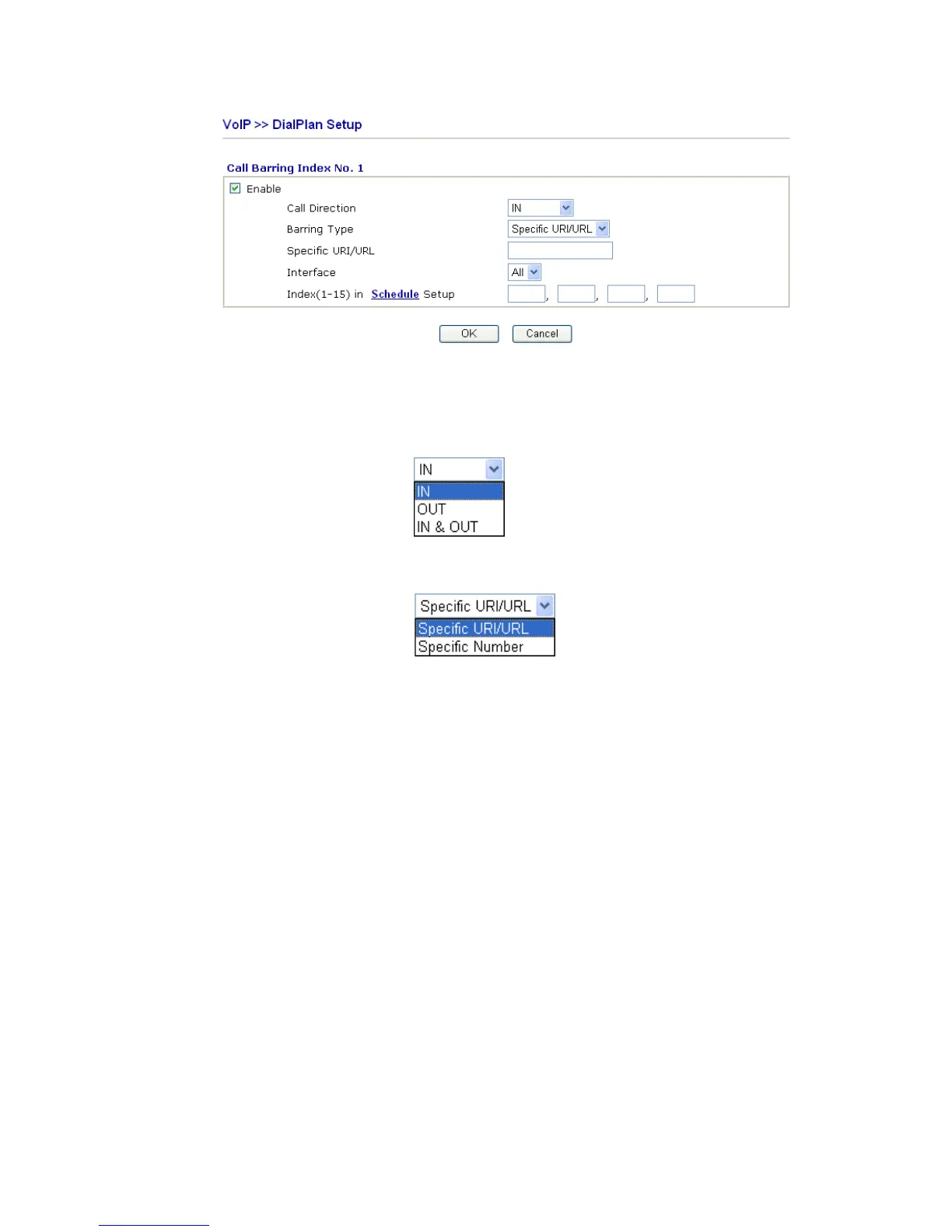 Index (1-15) in Schedule Enter the index of schedule profiles to control the call barring