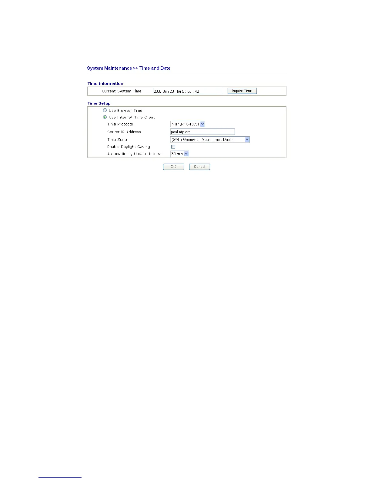 Automatically Update Interval Select a time interval for updating from the NTP server.