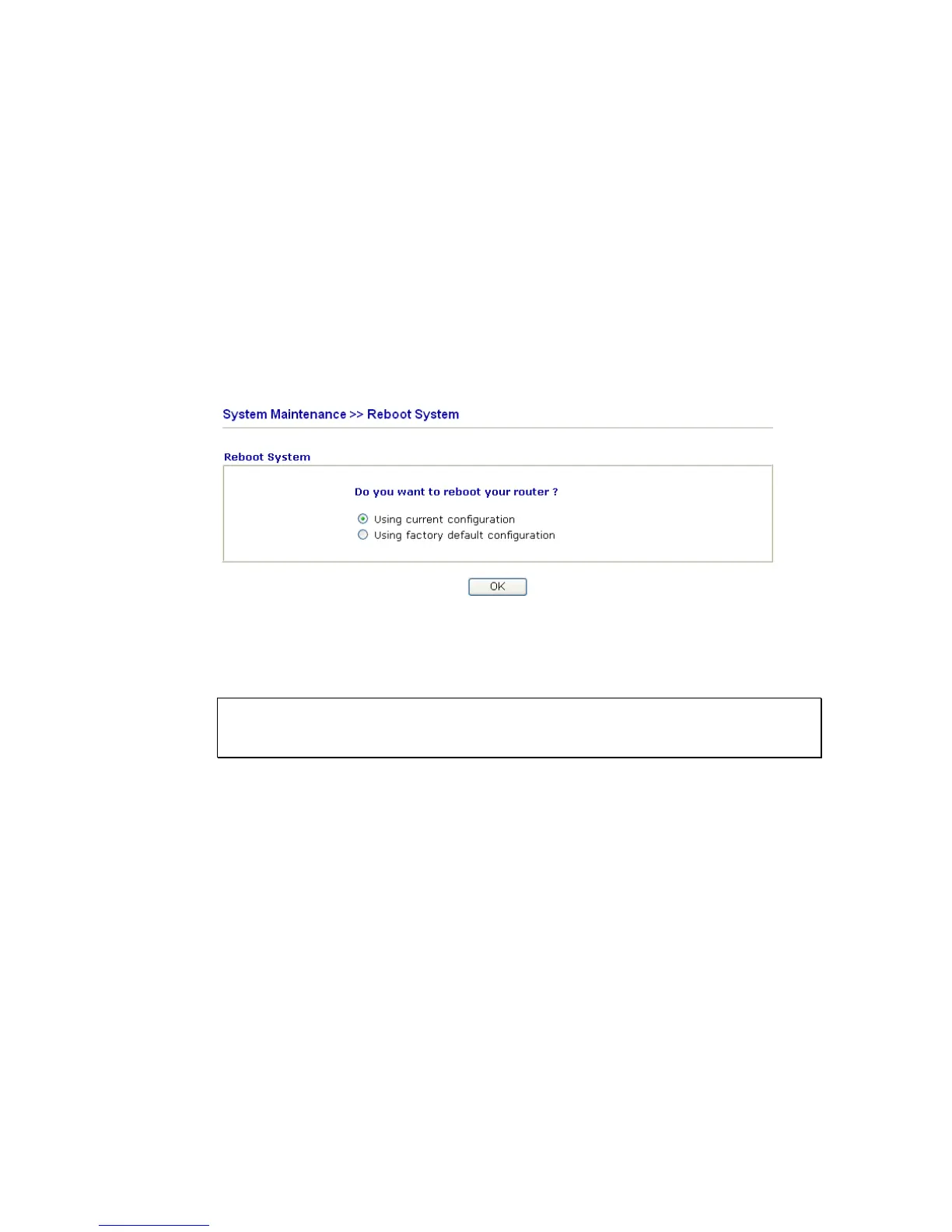 If you want to reboot the router using the current configuration, check Using current
