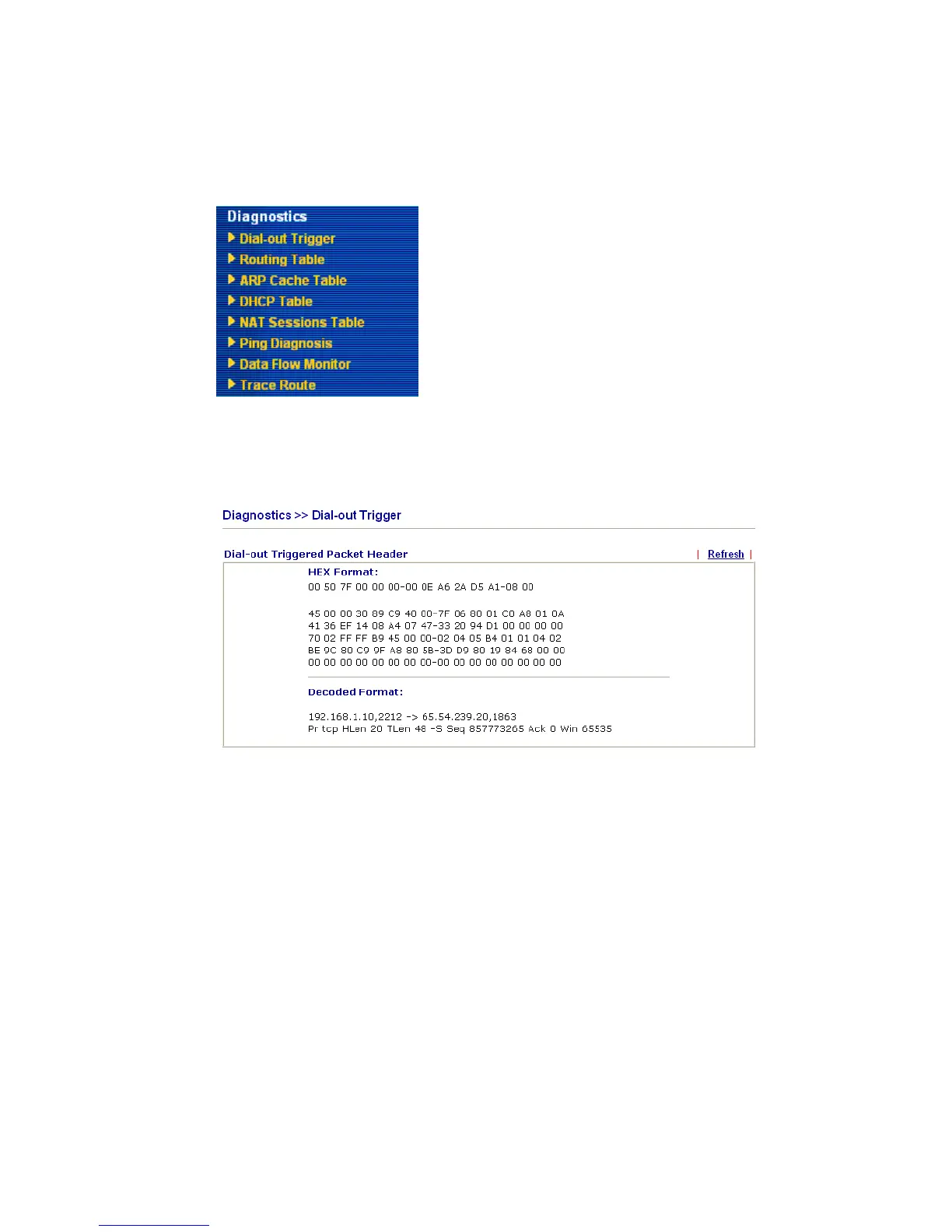Click Diagnostics and click Dial-out Trigger to open the web page. The internet connection