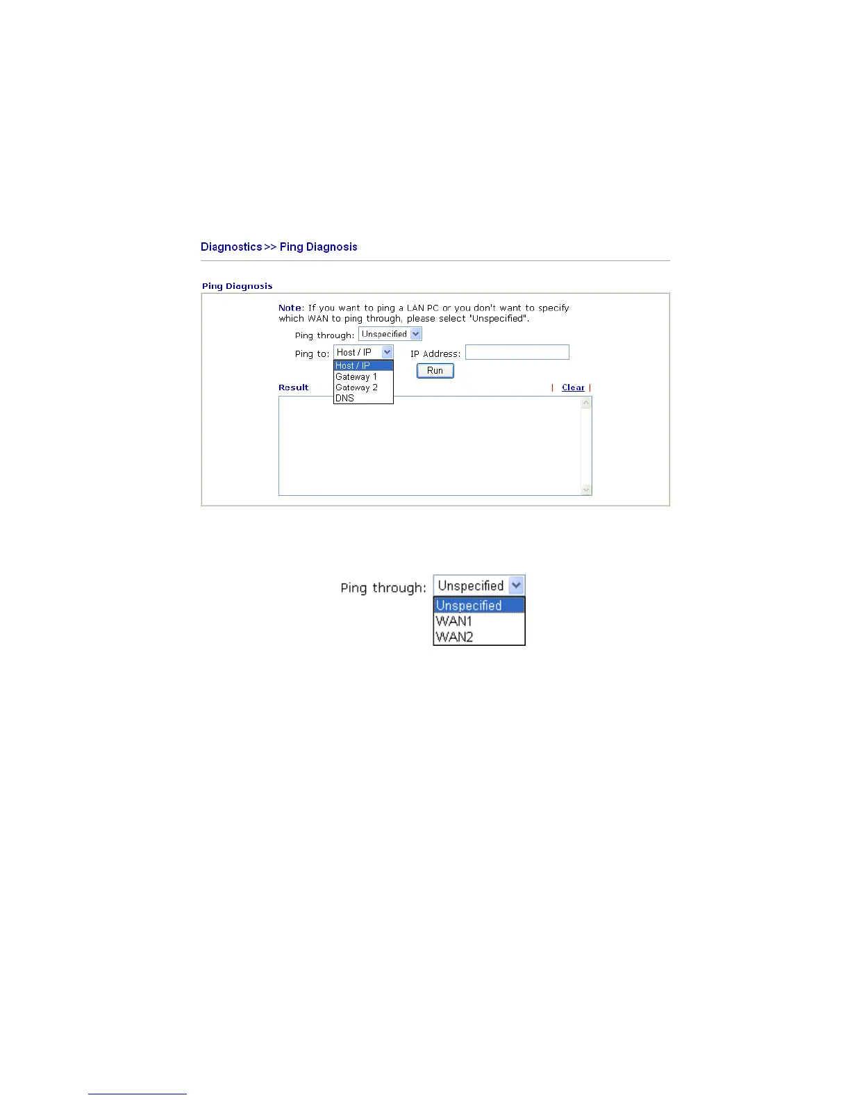 Click Diagnostics and click Ping Diagnosis to pen the web page.