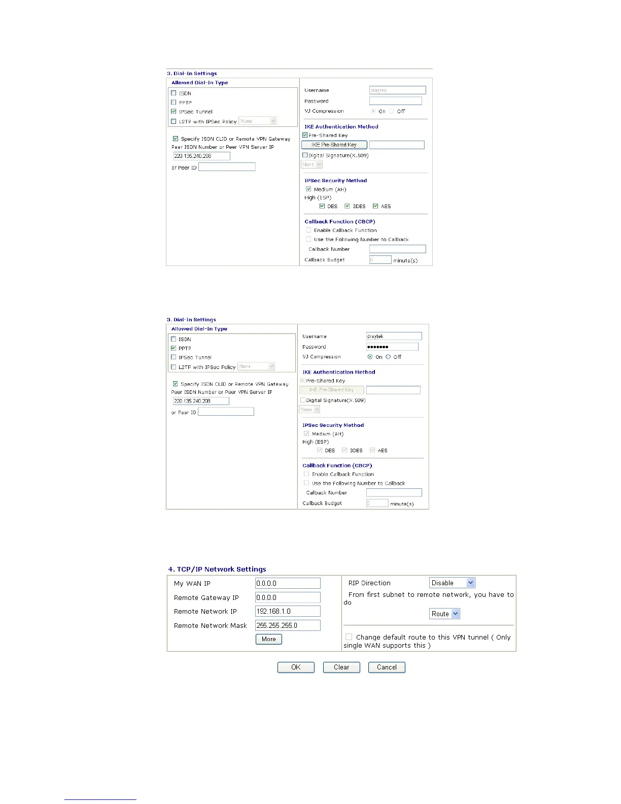 Address, Username, Password, and VJ Compression for this Dial-In connection.