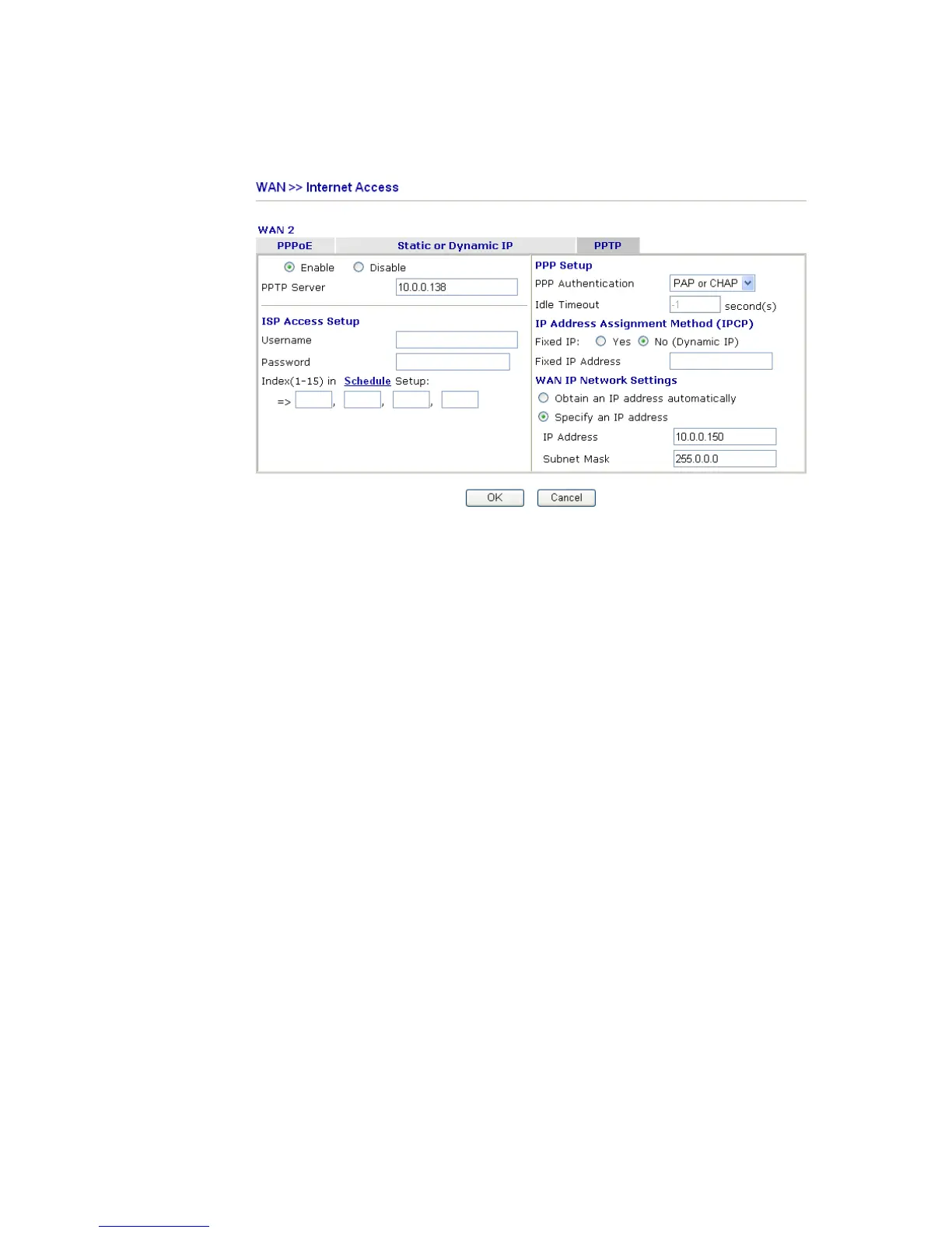 2. Check if PPTP Server, Username, Password and WAN IP address are set correctly