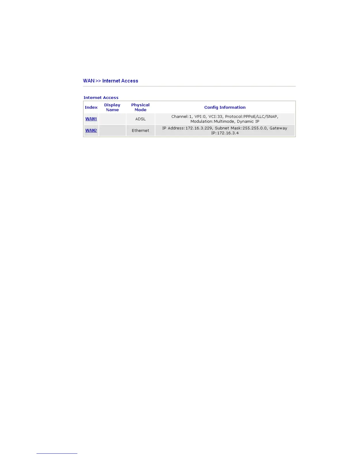 Display Name It shows the name of the WAN1/WAN2 that entered in general