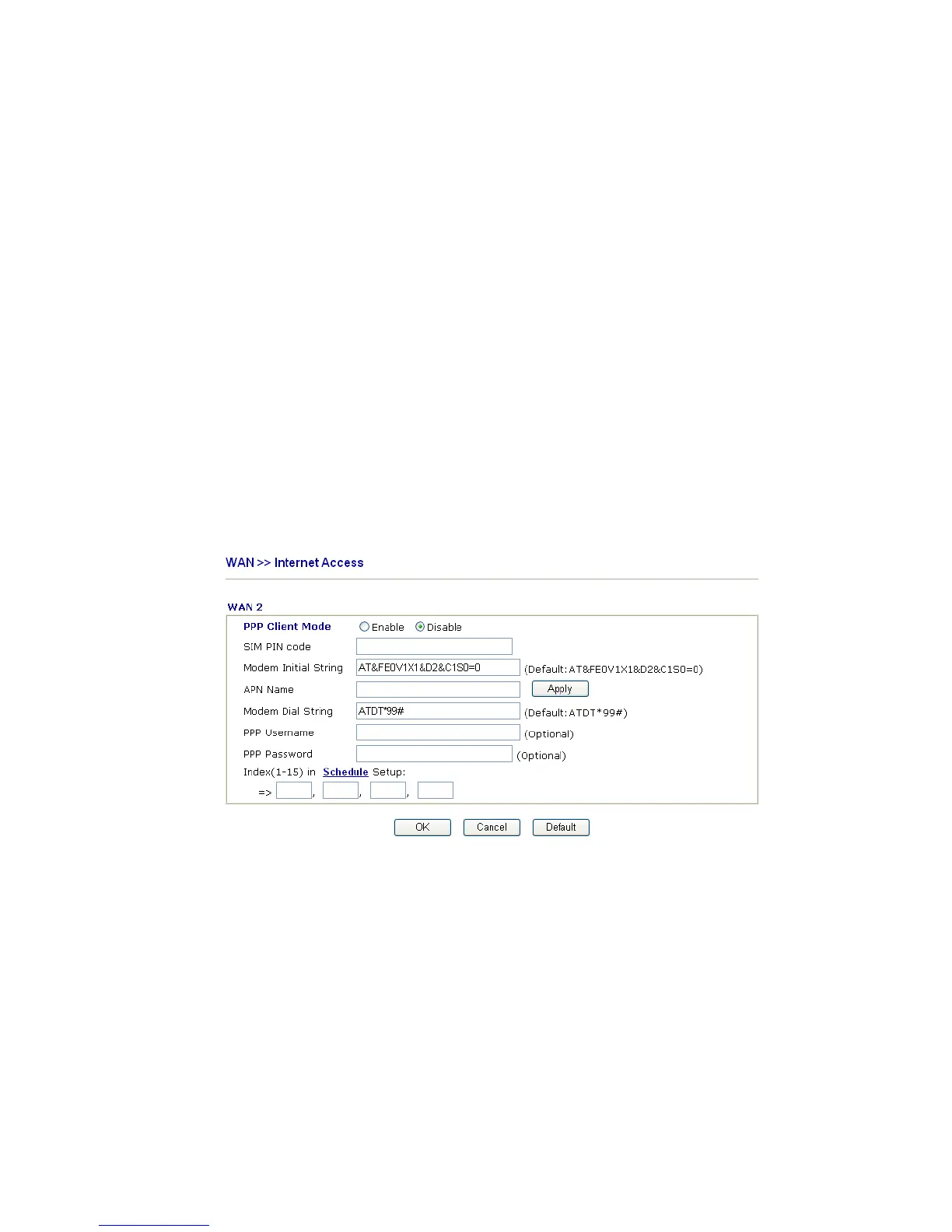Modem Initial String Such value is used to initialize USB modem. Please use the default