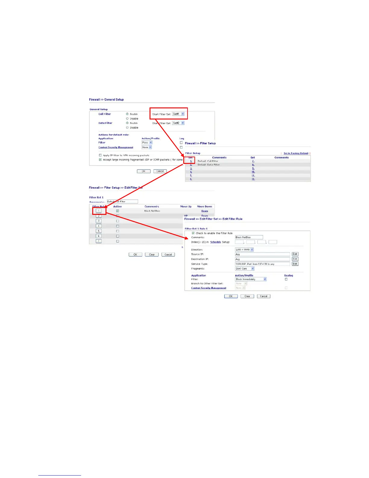 link them in a serial manner. Each filter set is composed by 7 filter rules, which can be