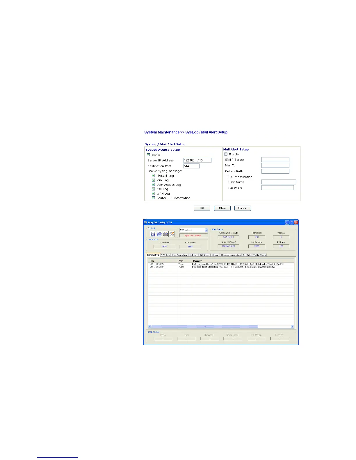 Warning Messages We provide Syslog function for user to retrieve message from Vigor