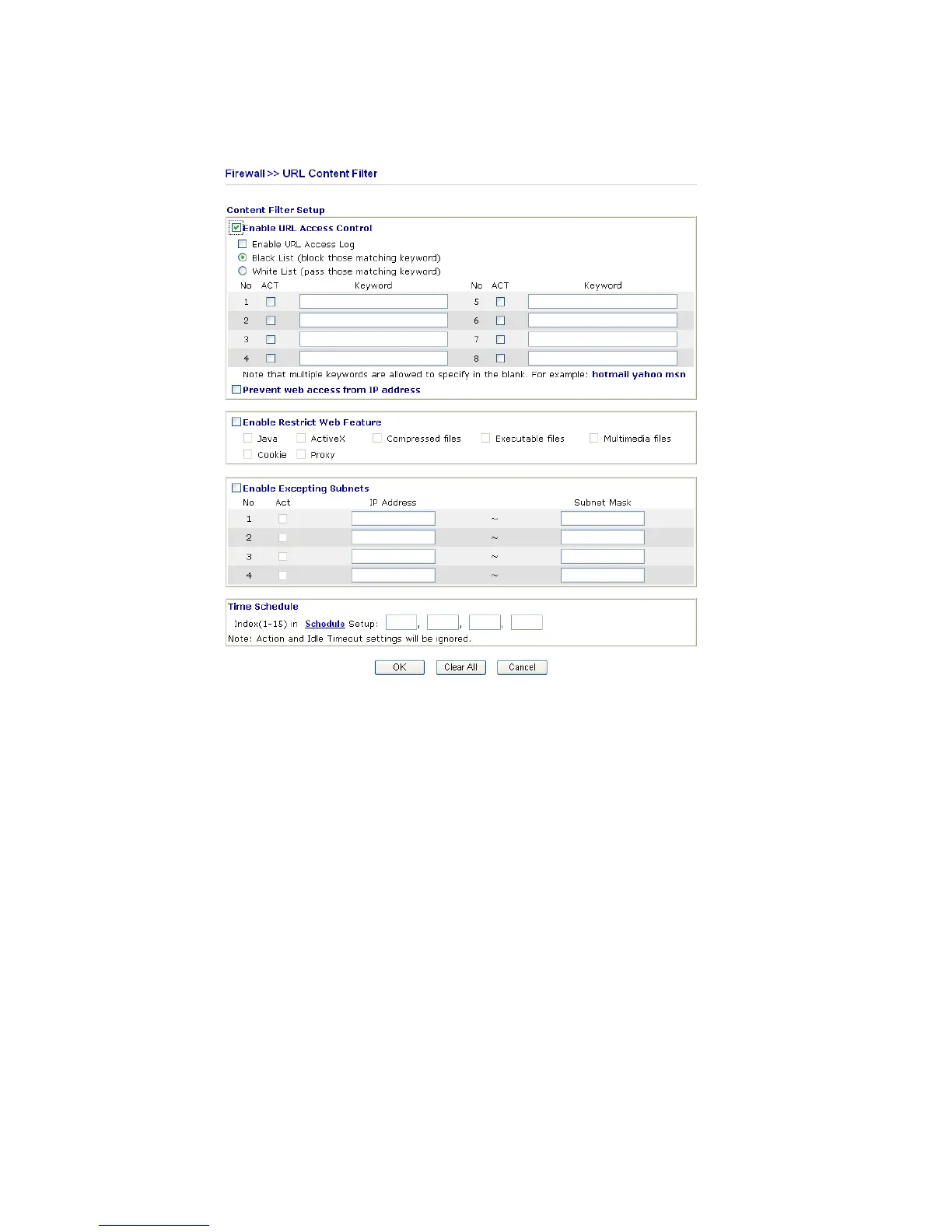Keyword The Vigor router provides 8 frames for users to define keywords