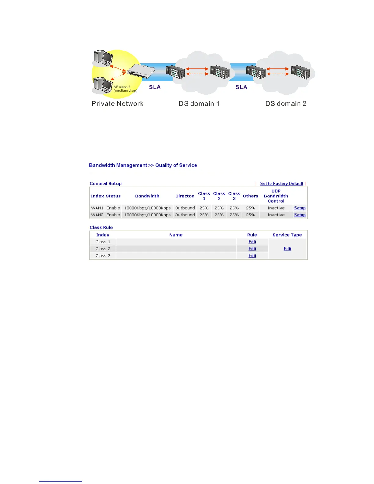 You can configure general setup for the WAN interface, edit the Class Rule, and edit the